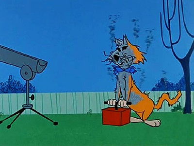 Jinks tricks Pixie and Dixie into getting painted white, so he can sell them to a lab. His curiosity soon gets him on a launch to the moon.