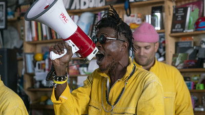 KOKOKO! are sonic warriors. They seized control of the Tiny Desk, shouting their arrival through a megaphone, while electronic sirens begin to blare.
