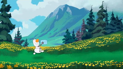 In this 2D animated short, Olaf finds a block of ice on a sleigh and takes it up a hill and rides down on it. He places the now shrunken ice block back on the sleigh, before picking up another block to do the same thing.