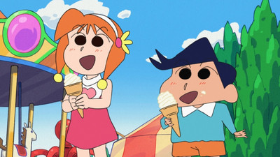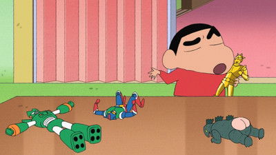 All the toys in Kasukabe City go missing. Shinnosuke and the other children begin to throw temper tantrums, begging their parents to buy new toys for them. But Bo chan walks calmly through the city filled with whining kids, with a rock in one hand and something else in the other...