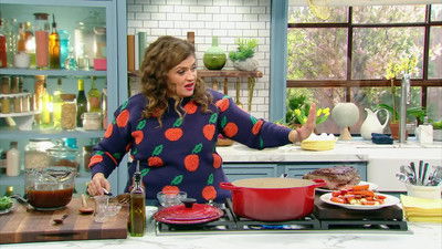 The Kitchen co-hosts put their own unique touches on delicious Italian recipes from red sauce joints. The whole crew works together to make The Kitchen Family's Sunday Sauce, Alex Guarnaschelli brings dessert to the feast with her Classic Tiramisu and Geoffrey Zakarian whips up a Tricolore Salad. Jeff Mauro makes the Ultimate Cheesy Chicken Parmesan, while Sunny Anderson and Katie Lee Biegel create two types of garlic bread: Cushy and Crispy Garlic Bread and Stovetop Garlic Bread!