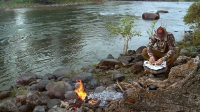 Over an open campfire, Steve demonstrates three different outdoor methods of preparing and cooking trout, ranging from savage to sophisticated.