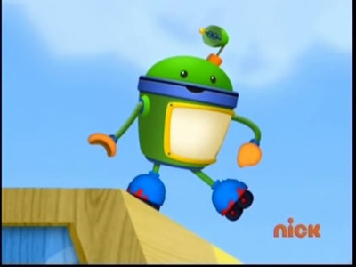 Bot goes out of control when wearing roller skates and Milli and Geo says that wearing the skates makes people go super fast but, there is no way for him to stop.